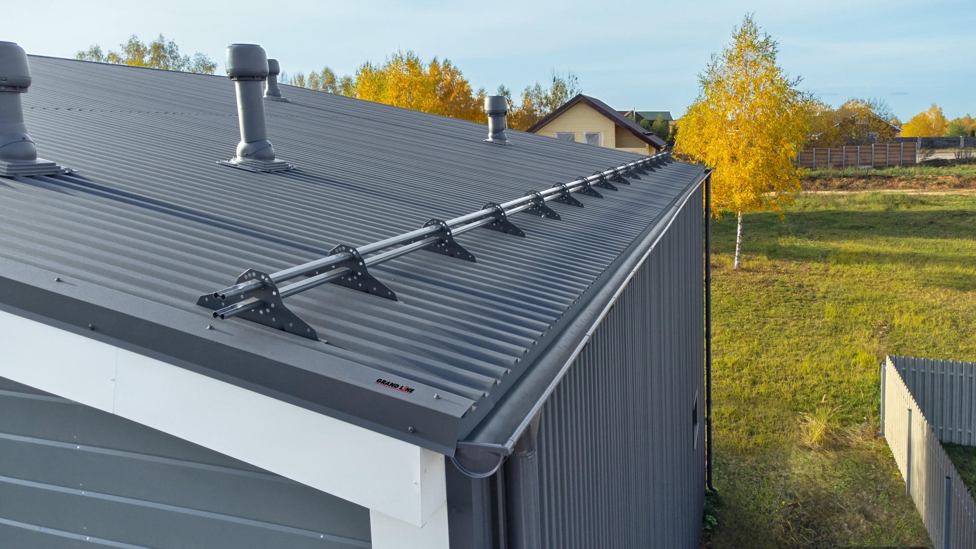 • Материал устойчив к механическим воздействиям. Не деформируется под тяжестью, выдерживает значительные снеговые нагрузки. Большая высота профиля обеспечивает кровле дополнительный запас прочности (модели GL (HC) – 35R, GL (H) – 60R, GL (H) – 75R).
